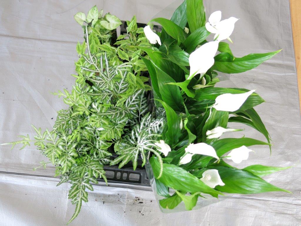 ①ハイドロカルチャー系 観葉植物のグラス植え ネオコール(炭)を培土とし空間浄化をめざします。材料費700円 10時〜、11時〜、13時〜。
