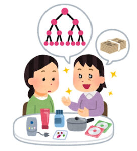 友人に「化粧品を買って会員になり、他の人を勧誘すると儲かる」と誘われ、契約したが、会員を増やせず在庫を抱えて困っているという事例があります。これは連鎖販売取引と呼ばれ、個人を販売員として勧誘し、さらに入会すれば利益が得られると説明されるものです。しかし、実際には加入者が見つからず、商品の支払いだけが残ることが多く、友人関係が悪化することもあります。簡単に儲かる話はないと考え、仕組みが理解できない場合は断ることが重要です。